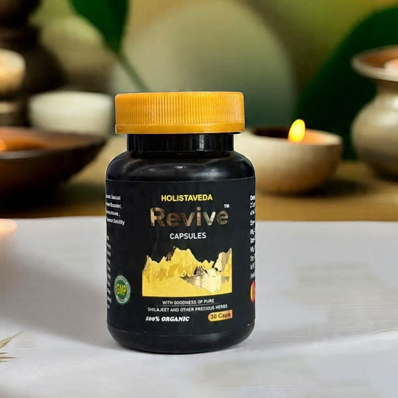 Revive capsules with goodness of Shilajeet, Ashwagandha, Makardhwaj, Kesar and many other potent ayurvedic herbs.